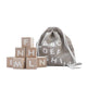 ALPHABET BLOCKS - BLACKTen wooden alphabet blocks in a pure linen sackAll the letters of the alphabet in their very own pure linen sack. On top of that, we added the numbers 0-9, too. The young one can stack them, count them, learn the letters and spell the first word. These wooden blocks are properly old-school. They are made of solid wood and not treated with anything. Their colour can vary a bit along with the natural colour variation of solid wood.Size: Blocks: 5,5 cm x 5,5 cm x 5,5 cm (each)Sack: 32 cm x 32 cmThe blocks are made of solid wood without any treatment. You can remove general grime by wiping the blocks with a damp cloth. However, if the blocks get dunked in watercolour or meat stew, those stains will be difficult to remove.The sack is a different matter. You can throw it in the wash and be merciless with it.Gullfallegur og vandaður dúkkuvagn frá Ooh noo